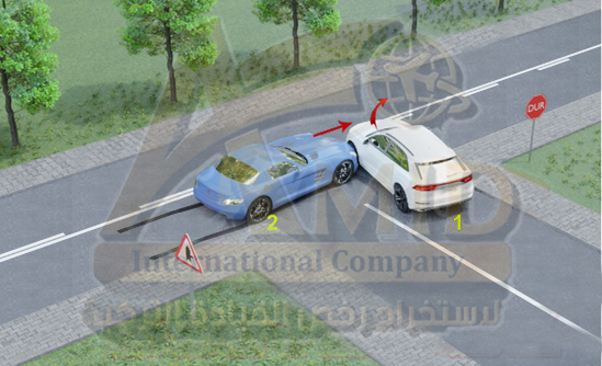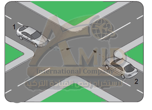 28) يجب على سائق المركبة 1 في الصورة الذي يرغب في الانعطاف يسارا القيام ب